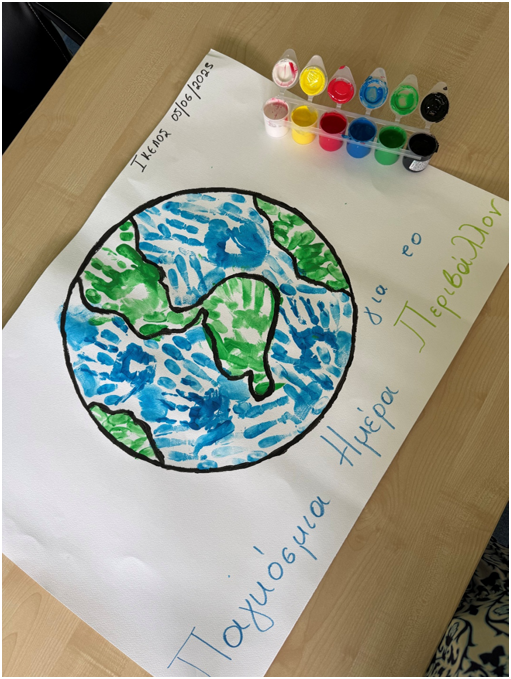 Με αφορμή τη Παγκόσμια Ημέρα Περιβάλλοντος στις 05/06/2025, τα παιδιά του Κέντρου Ημέρας για Παιδιά, Εφήβους και Νέους Ενήλικες με διαταραχές αυτιστικού φάσματος της Π.Ε. Ηλείας του σωματείου Ίκελος συμμετείχαν σε μια όμορφη και δημιουργική δραστηριότητα, φτιάχνοντας μια πολύχρωμη κατασκευή με αποτυπώματα των χεριών τους, σχηματίζοντας τη Γη που όλοι μοιραζόμαστε και οφείλουμε να προστατεύουμε. Μέσα από το παιχνίδι και την ζωγραφική, μιλήσαμε για τη σημασία του σεβασμού προς το περιβάλλον και την ανάγκη να συμβάλλουμε όλοι -μικροί και μεγάλοι- στη φροντίδα του πλανήτη μας.