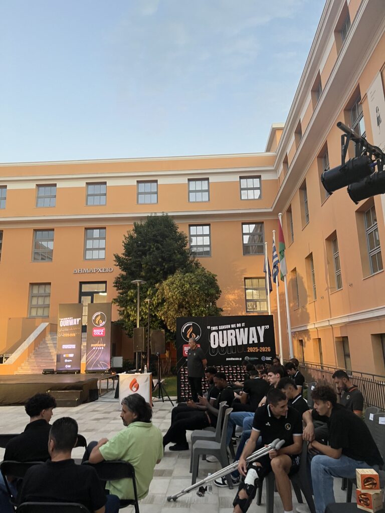 Μέλη της Διεπιστημονικής Ομάδας του Σωματείου «Ίκελος» Παιδιών, Εφήβων και Νεαρών Ενηλίκων με ΔΑΦβρέθηκαν τη Δευτέρα 29 Σεπτεμβρίου 2025 στο Δημαρχείο Πατρέων, όπου πραγματοποιήθηκε η επίσημη παρουσίαση της νέας φανέλας και της ομάδας του Προμηθέα Πάτρας για τη σεζόν 2025-2026.