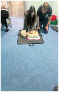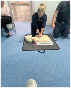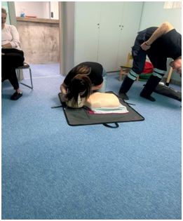 Οι συμμετέχοντες είχαν την ευκαιρία να παρακολουθήσουν πρακτική επίδειξη και να δοκιμάσουν οι ίδιοι κάποιες από τις τεχνικές, υπό την καθοδήγηση των εκπαιδευτών. Ήταν μια πολύ σημαντική εμπειρία που μας βοήθησε να μάθουμε πώς μπορούμε να βοηθήσουμε αποτελεσματικά έναν άνθρωπο που βρίσκεται σε ανάγκη, μέχρι να φτάσει το ασθενοφόρο.