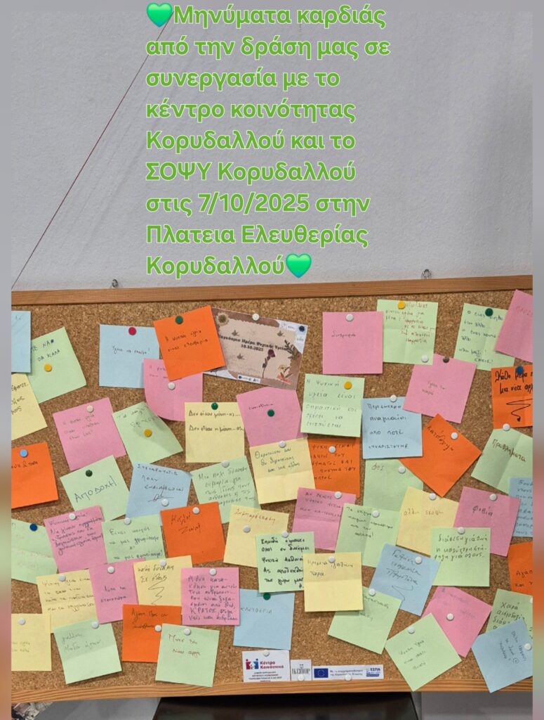Με αφορμή την Παγκόσμια Ημέρα Ψυχικής Υγείας, ο Σ.Ο.Ψ.Υ. Κορυδαλλού διοργάνωσε την ημερίδα με θέμα: «Το στίγμα και οι διακρίσεις στους ανθρώπους με προβλήματα ψυχικής υγείας» στο Πνευματικό Κέντρο Κορυδαλλού, Αίθουσα «Πλειάδες», την Παρασκευή 10 Οκτωβρίου 2025.